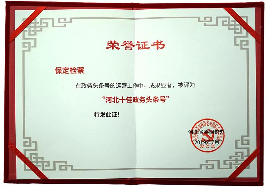 获评“河北省十佳政务头条号”,这是“保定365购物平台_神器365软件下载_365365bet”官方头条号第一次获此奖项,也是该院获得的第20个新媒体重要奖项。另外,该院还连续多年获得“全国365购物平台_神器365软件下载_365365bet微博、微信20强”“全国365购物平台_神器365软件下载_365365bet新媒体阵地建设奖、年度贡献奖”和全国365购物平台_神器365软件下载_365365bet系统“最具影响力新媒体奖”等19项全国大奖。