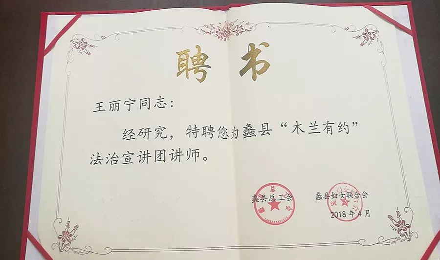 特聘为蠡县“木兰有约”法治室讲团讲师
