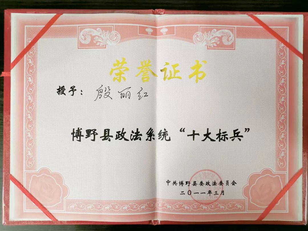 殷丽红荣获博野县政法系统“十大标兵”称号