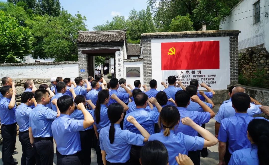 “我志愿加入中国共产党,拥护党的纲领,遵守党的章程,履行党员义务,执行党的决定……”党员干警来到晋察冀司令部旧址,王庆品领誓,全体党员面向党旗,庄严地举起右手,进行了重温入党誓词宣誓仪式。仪式结束后,大家随即参观了晋察冀司令部旧址,目睹一件件电报、枪械、旧生活用品等珍贵史料和革命文物,久久地沉浸在革命战争的历史场景中,内心深受触动和鼓舞,并深刻地感受到在烽火连天的抗日战争年代,晋察冀司令部领导抗日军民进行了不屈不挠、英勇顽强的战斗。