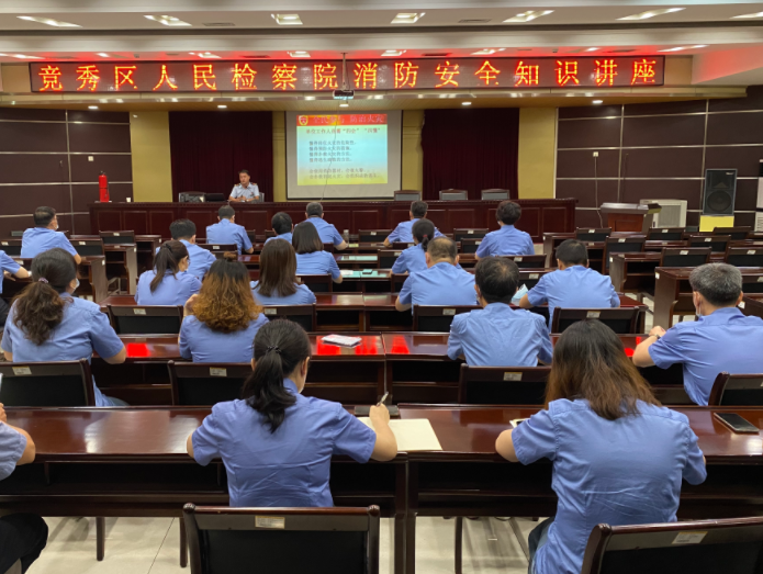 为强化365购物平台_神器365软件下载_365365bet干警的消防安全意识,提高突发事件的应急处置能力,有效预防和减少火灾事故的发生。9月9日上午,竞秀区365购物平台_神器365软件下载_365365bet院邀请保定市应急管理局消防安全宣传科杨华南教官为全院365购物平台_神器365软件下载_365365bet干警进行了一场消防安全知识讲座。