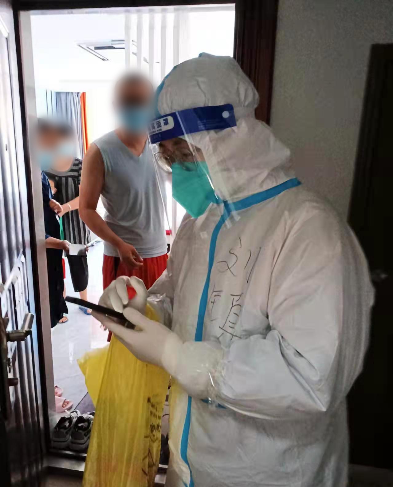 在参加单位组织支援永信社区的志愿者活动中,面对雨雪天气,他的防护面罩上面起了一层雾气,双手常常因为保持一个姿势而冻僵,脚上的鞋套已成了碎片,但他仍然恪尽职守,一丝不苟,仔细核对每一个管码,认真检查每一个被检人员信息和检测样本数量,确保管样不出纰漏。面对年龄较大、不会使用智能手机的老人,他也耐心地帮助他们操作或通过身份证录入相关信息,每次都认真细致地完成检测工作。