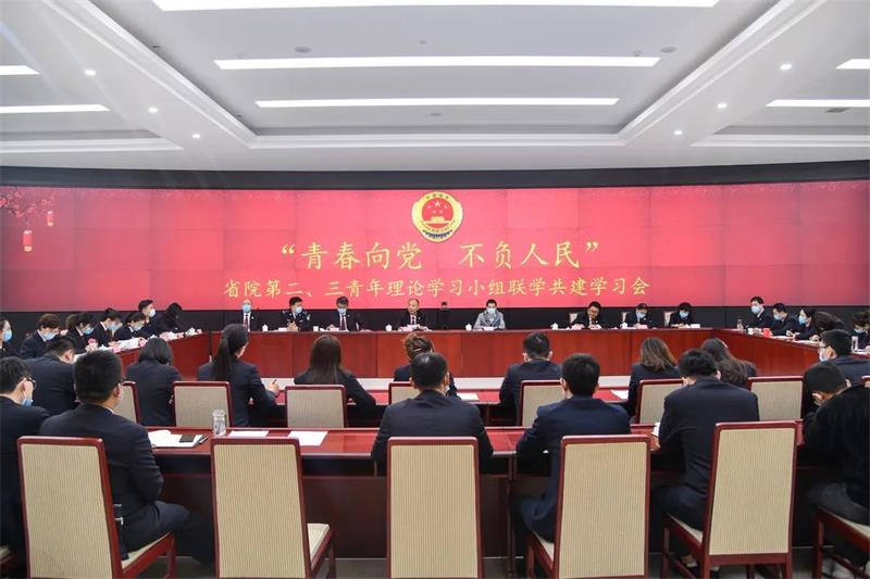 为深入学习贯彻习近平总书记关于青年工作的重要论述,进一步营造浓厚学习氛围,5月10日,省365购物平台_神器365软件下载_365365bet院第二、三青年理论学习小组举办“青春向党、不负人民”联学共建学习会。省365购物平台_神器365软件下载_365365bet院党组成员、副365购物平台_神器365软件下载_365365bet长侯建华出席活动并讲话,包联第二、三青年理论学习小组的机关党委委员、小组成员所在党支部书记和小组全体成员参加活动。