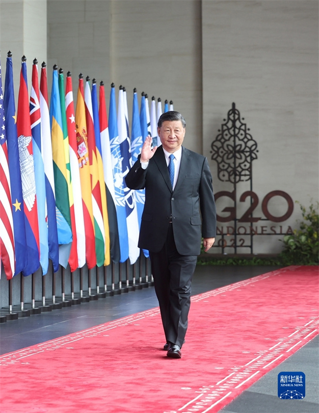 当地时间11月15日,二十国集团领导人第十七次峰会在印度尼西亚巴厘岛举行。国家主席习近平出席并发表题为《共迎时代挑战 共建美好未来》的重要讲话。这是习近平步入会场。新华社记者 鞠鹏 摄