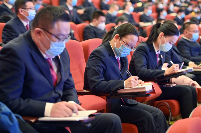 最高检党组成员、政治部主任潘毅琴主持授课。在家最高检院领导、检委会专职委员,最高检机关有关部门负责人,最高检机关学习贯彻党的二十大精神培训班学员聆听授课。