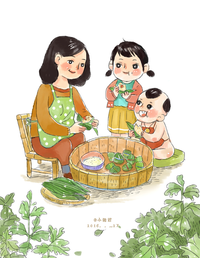 每到这一天,我就想起奶奶和母亲来。于是,就有粽子的清香在脑海中氤氲散来,眼前浮现出奶奶和母亲手托苇叶时的盈盈笑意和小小的我双手支着下巴急不可耐的等待。