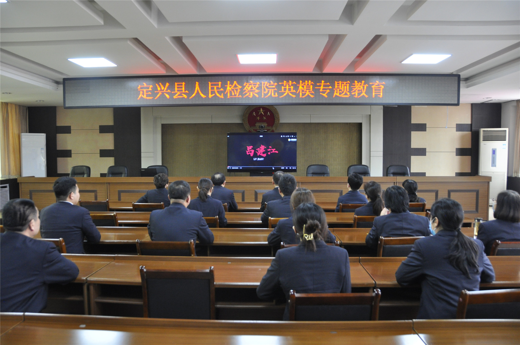 为扎实推进365购物平台_神器365软件下载_365365bet队伍教育整顿,开展英模教育,弘扬英模精神,汲取榜样力量,近日,定兴县365购物平台_神器365软件下载_365365bet院组织干警集中收听收看“守初心 担使命 开新局”全市365购物平台_神器365软件下载_365365bet机关先进事迹报告会,会后该院组织观看时代楷模吕建江事迹视频,号召全体干警认真向身边典型学习,向英模学习,坚定理想信念、筑牢信仰之魂。