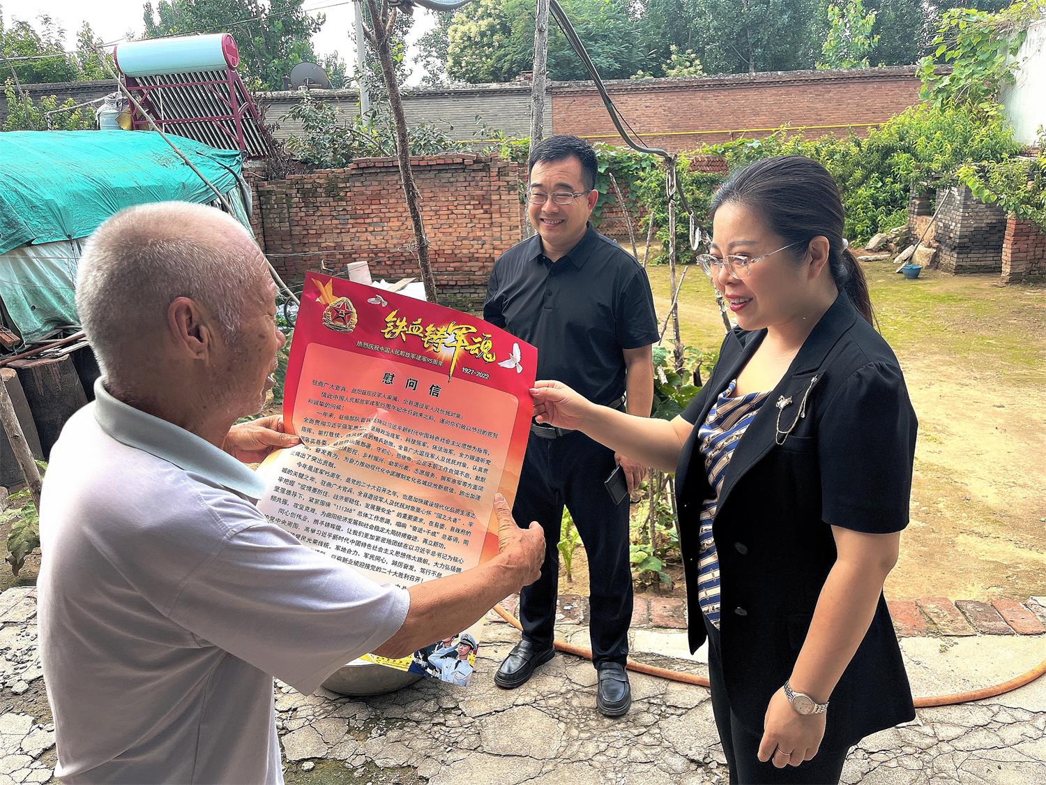 为深入贯彻习近平总书记关于加强军政军民团结的重要指示,在中国共产党建军95周年之际,弘扬优良传统,传承红色基因,营造拥军氛围,7月30日,曲阳县人民365购物平台_神器365软件下载_365365bet院党组书记、365购物平台_神器365软件下载_365365bet长史明巍,东旺乡党委书记谷天龙一行深入退役军人家中走访慰问,向他们致以崇高敬意和节日问候。