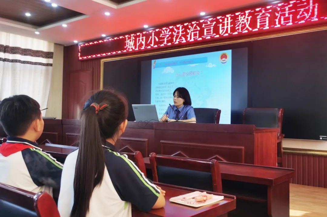 经了解,城内小学由于师资原因,只在个别班级开设了法治课堂,法治教育缺失,亟需法治副校长来补上这一课。因疫情和场地受限,这次的法治课堂在多媒体教室进行,由一个班级参加,同时录制法治课堂课件,今后再在所有班级播放学习。