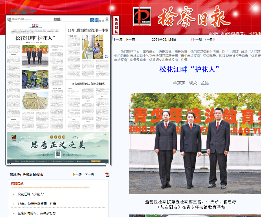 他们胸怀正义、富有爱心、通晓法律、擅长教育,他们将温情融入法律,以“小切口”解决“大问题”,他们组建的吉林省首个独立未检部门曾获全国“青少年维权岗”荣誉称号,连续12年被授予省市“优秀青少年维权岗”称号及省市“优秀妇女儿童维权岗”称号。