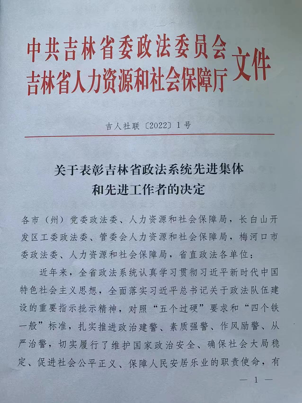 关于表彰吉林省政法系统先进和先进工作者的决定