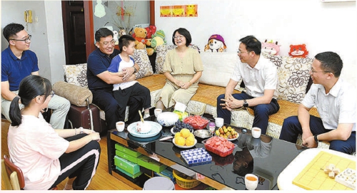 “孩子现在身体怎么样了?好不好带?来,让我也抱一下小家伙。”干警刘明军的孩子早产住院,熊良明放心不下,前来问干警家属。“你生产的时候,正是我院公益诉讼快速检测实验室筹建的关键期,多亏有了你的全力支持和默默付出,我代表院党组向你们表示感谢。”听了熊良明的一番话,刘明军的妻子感动地说:“谢谢领导的关心,家人应该相互支持的。我会努力做好‘贤内助’,多支持他工作。”