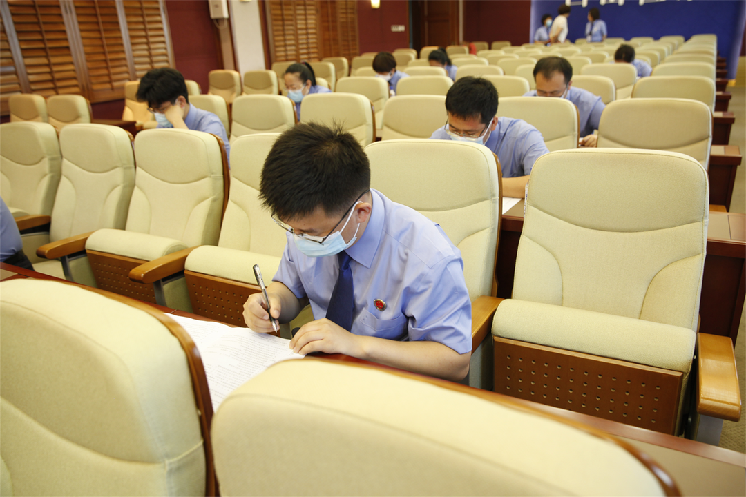 笔试试卷内容涵盖政治理论、法律法规、业务知识等应知应会内容,选手们集中精力、争分夺秒,知识储备、法律功底和业务水平得到一次全面检验。