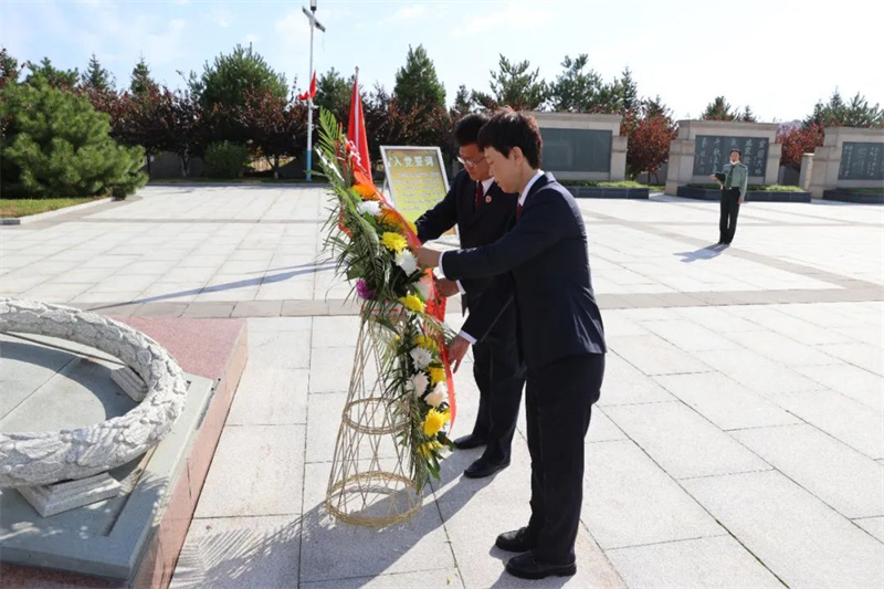 秋日的陈翰章烈士陵园,松柏肃穆。该院全体干警怀着无比崇敬的心情肃立默哀,向陈翰章将军雕像敬献花篮,表达深深的崇敬之情。