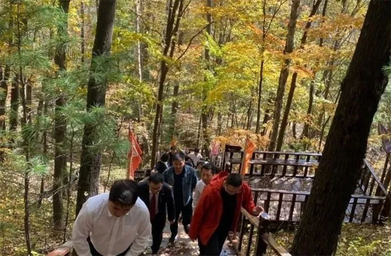 在密林深处,干警们追寻抗联战士的足迹,走进抗联英雄们战斗过的地方,实地参观了散兵坑、抗联密营、陈翰章战迹地等。当年抗联战士生活和战斗过的地方呈现在眼前,令在场的每一位干警都感慨万分,敬佩不已。
