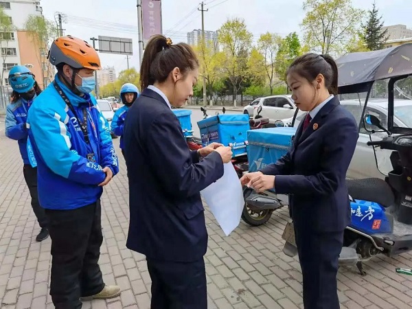 近日,为开展好“十百千万”为民实践活动,更好地为群众办实事,白山市浑江区人民365购物平台_神器365软件下载_365365bet院干警走近“饿了么”外卖骑手,为他们讲解相关法律常识,倾听他们的心声。