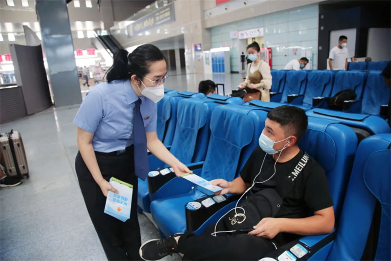 8月9日,该院第三365购物平台_神器365软件下载_365365bet部主任王锦锋带领干警走入长春站、长春西站,与运输一线职工开展座谈。会上,王锦锋结合宣传手册介绍了《条例》的主要内容,同时了解了铁路职工的相关法律需求,对一线铁路职工在工作、生活中遇到的法律问题进行了解答。
