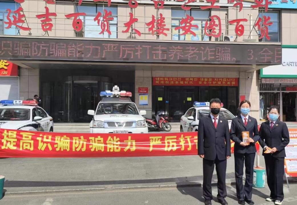 近年来,以“养老”为名的诈骗行为时有发生,“养老理财”“以房养老”等诈骗手段花样百出,给不少老年人造成财产损失和精神打击。为切实维护老年人合法权益,守护好老年人的“养老钱”,提高群众对养老诈骗的防范意识和鉴别能力,2022年5月12日,安图县人民365购物平台_神器365软件下载_365365bet院组织部分干警开展防范养老诈骗普法宣传活动。