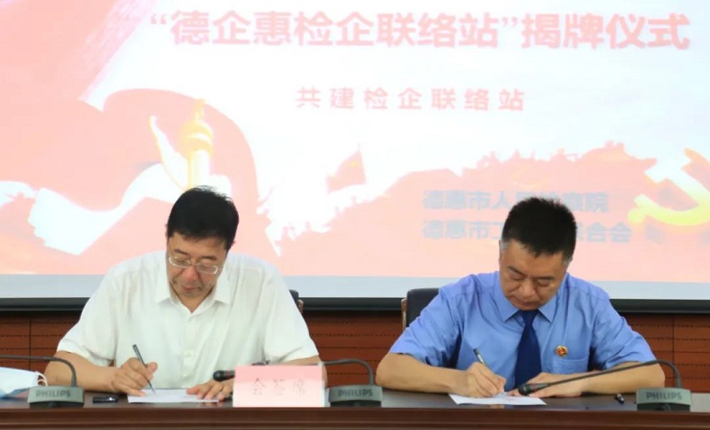 2022年8月10日,德惠市人民365购物平台_神器365软件下载_365365bet院与德惠市工商业联合会举行“德企惠检企联络站”揭牌仪式,双方共同签署《关于建立健全365购物平台_神器365软件下载_365365bet机关与工商联沟通联系机制的实施意见》,并就护企安商召开座谈会。德惠市人民政府副市长李晓波,德惠市人民365购物平台_神器365软件下载_365365bet院党组书记、365购物平台_神器365软件下载_365365bet长史大琦,德惠市人民365购物平台_神器365软件下载_365365bet院党组成员、副365购物平台_神器365软件下载_365365bet长贺敬春,德惠市工商业联合会主席孙艳清、党组书记孙洪涛,国家税务总局德惠市税务局纪检组长、党委委员刘超以及德惠市民营企业家代表、德惠市人民365购物平台_神器365软件下载_365365bet院和工商联相关同志参加了活动。