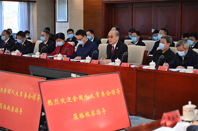 1月13日上午,中共中央政治局委员、全国人大常委会副委员长王晨率全国人大常委会调研组参加最高检举行的调研座谈会,通过视频连线方式听取黑龙江、广东两省公益诉讼工作情况汇报。