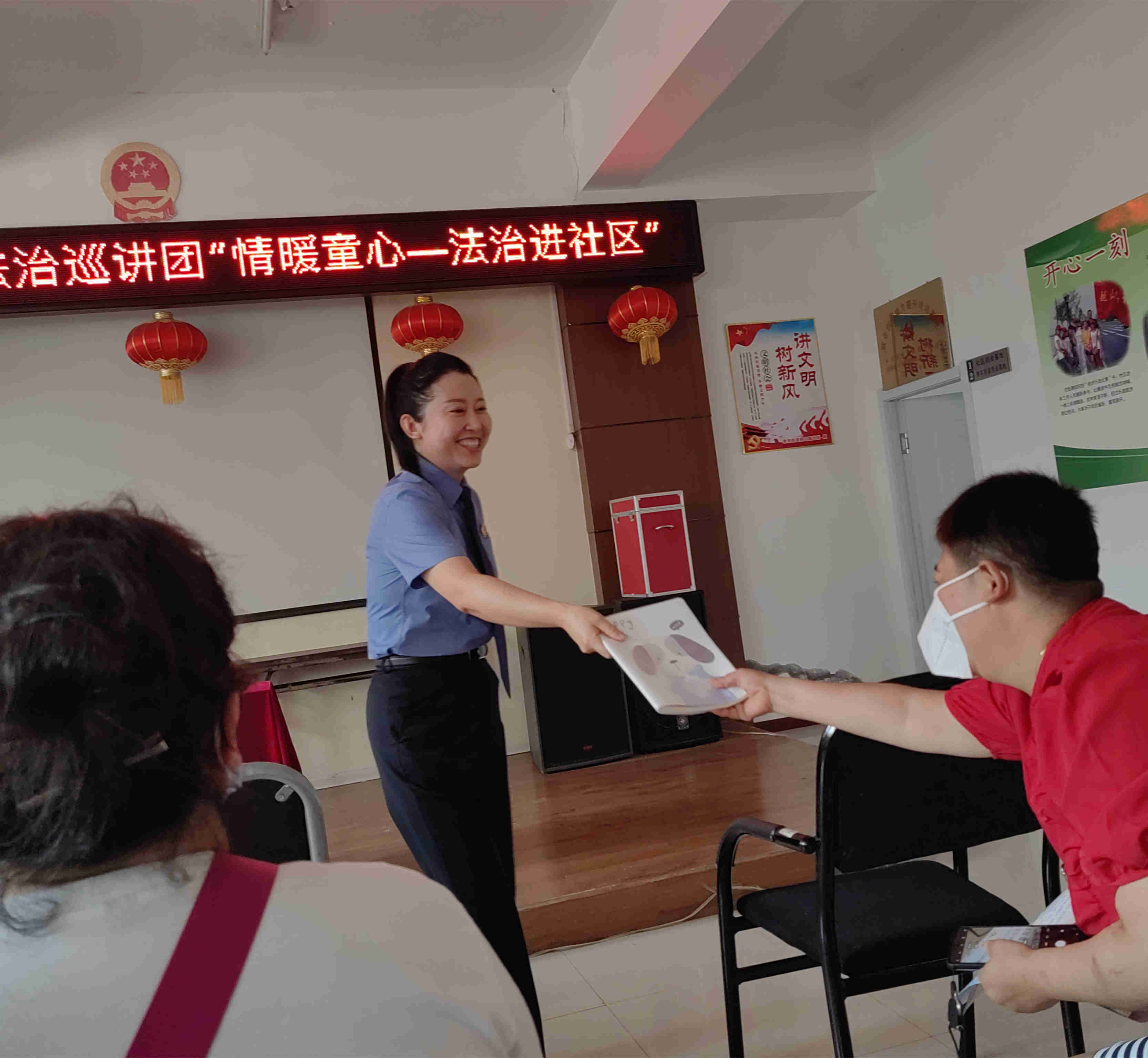 为加强对困境儿童、事实无人抚养儿童及残疾家庭儿童的关爱保护工作,切实维护孩子们的合法权益,7月20日,磐石市人民365购物平台_神器365软件下载_365365bet院参加了由吉林市人民365购物平台_神器365软件下载_365365bet院与吉林市民政局联合开展的“情暖童心—法治进社区”普法巡讲活动。此次普法巡讲活动,磐石市人民365购物平台_神器365软件下载_365365bet院石竹未检工作室365购物平台_神器365软件下载_365365bet官李丹,走进吉林市船营区致和街道越山路社区进行未成年人普法宣传活动,为社区内的困境儿童、事实无人抚养儿童、残疾家庭儿童及家长送上了一堂特殊的法治课。