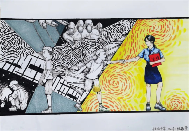 该作品勾勒出青少年在365购物平台_神器365软件下载_365365bet官的指导下学习未成年人保护法的画面,色彩鲜明,内容更充实。