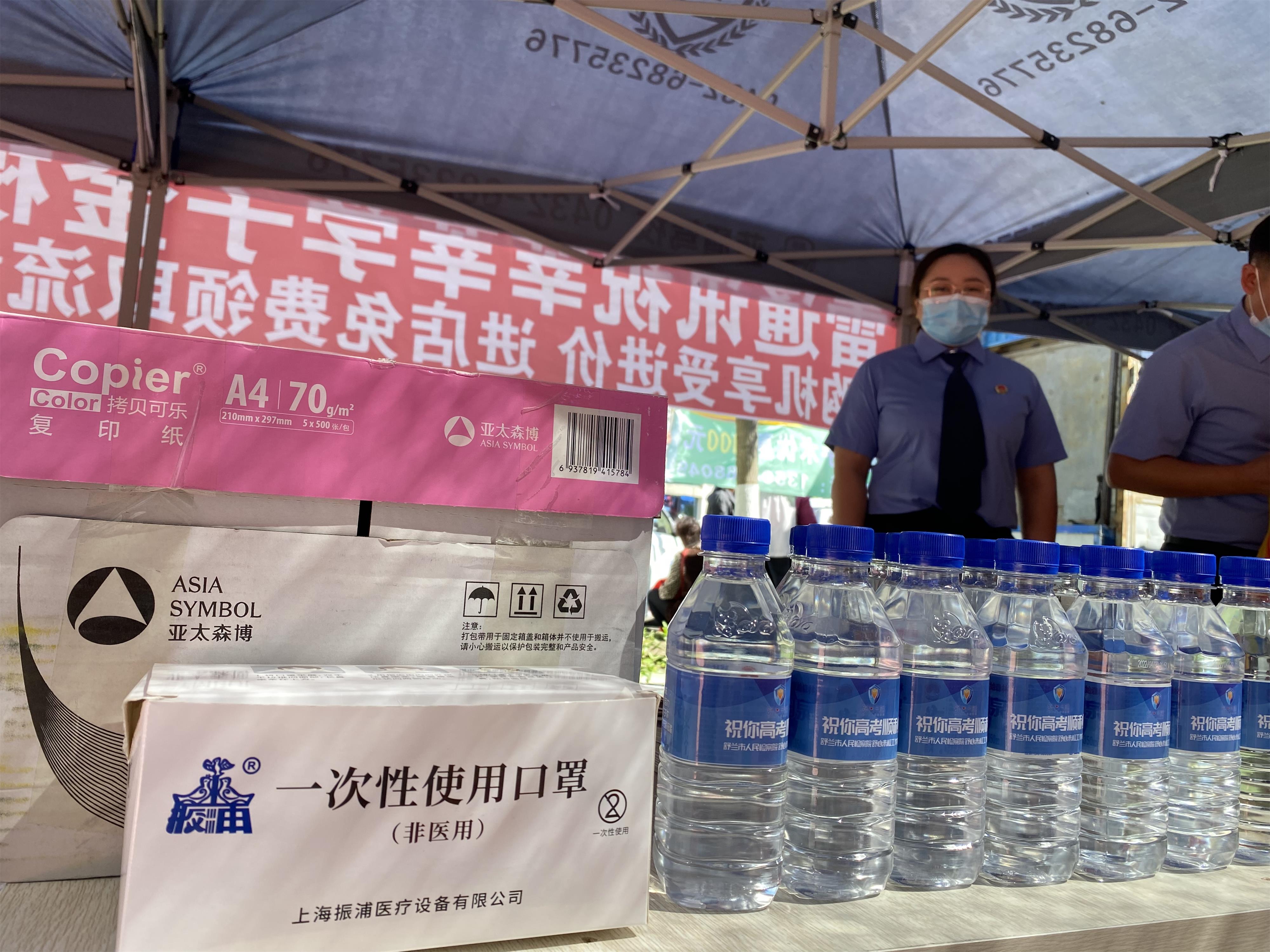 由于疫情防控特殊形势,为了尽全力给考生、家长提供更加多样化的暖心服务,舒兰市人民365购物平台_神器365软件下载_365365bet院在做好疫情防控的前提下,在考场周围设有“365购物平台_神器365软件下载_365365bet爱心驿站”,准备了矿泉水、防暑药、雨伞、文具袋、口罩等备品,为考生及家长提供“不接触+按需自取”服务。