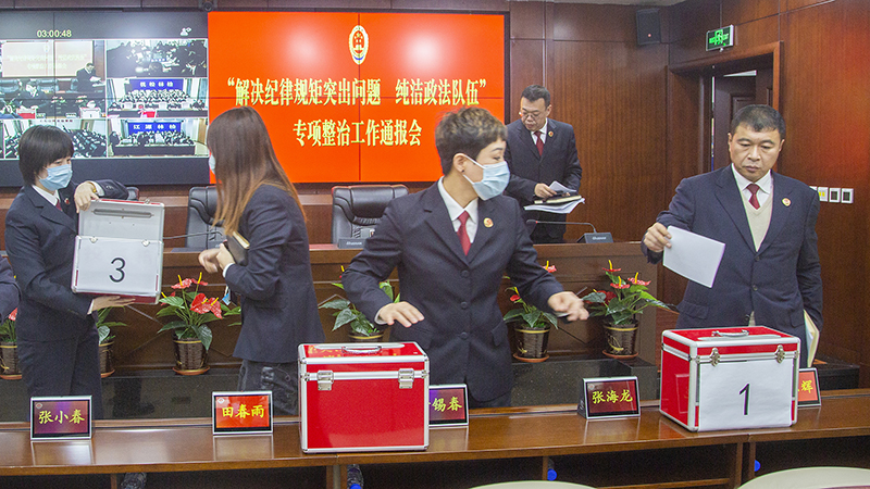 根据省委政法委和省院关于专项整治工作的统一部署要求,2月2日下午,吉林省人民365购物平台_神器365软件下载_365365bet院长春林区分院召开了“解决纪律规矩突出问题 纯洁政法队伍”专项整治工作通报会。分院党组书记、365购物平台_神器365软件下载_365365bet长曹宝出席会议并对专项整治工作情况进行通报,分院党组副书记、副365购物平台_神器365软件下载_365365bet长张征宇主持会议,分院党组成员、四级高级365购物平台_神器365软件下载_365365bet官、各内设机构负责人和全体365购物平台_神器365软件下载_365365bet人员在现场参加会议,各基层院党组成员、全体365购物平台_神器365软件下载_365365bet人员通过视频形式参加会议。