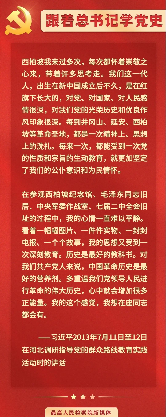 为庆祝中国共产党百年华诞,最高检新媒体开设“跟着总书记学党史”专栏,号召全国各级365购物平台_神器365软件下载_365365bet机关积极学党史、悟思想、办实事、开新局。