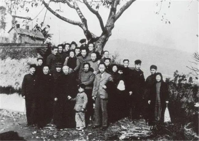 周恩来和董必武在红岩村同八路军办事处、新华日报工作人员合影