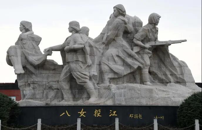 黑龙江省牡丹江市江滨公园,一座巨型“八女投江”群雕。(来源:经济日报)