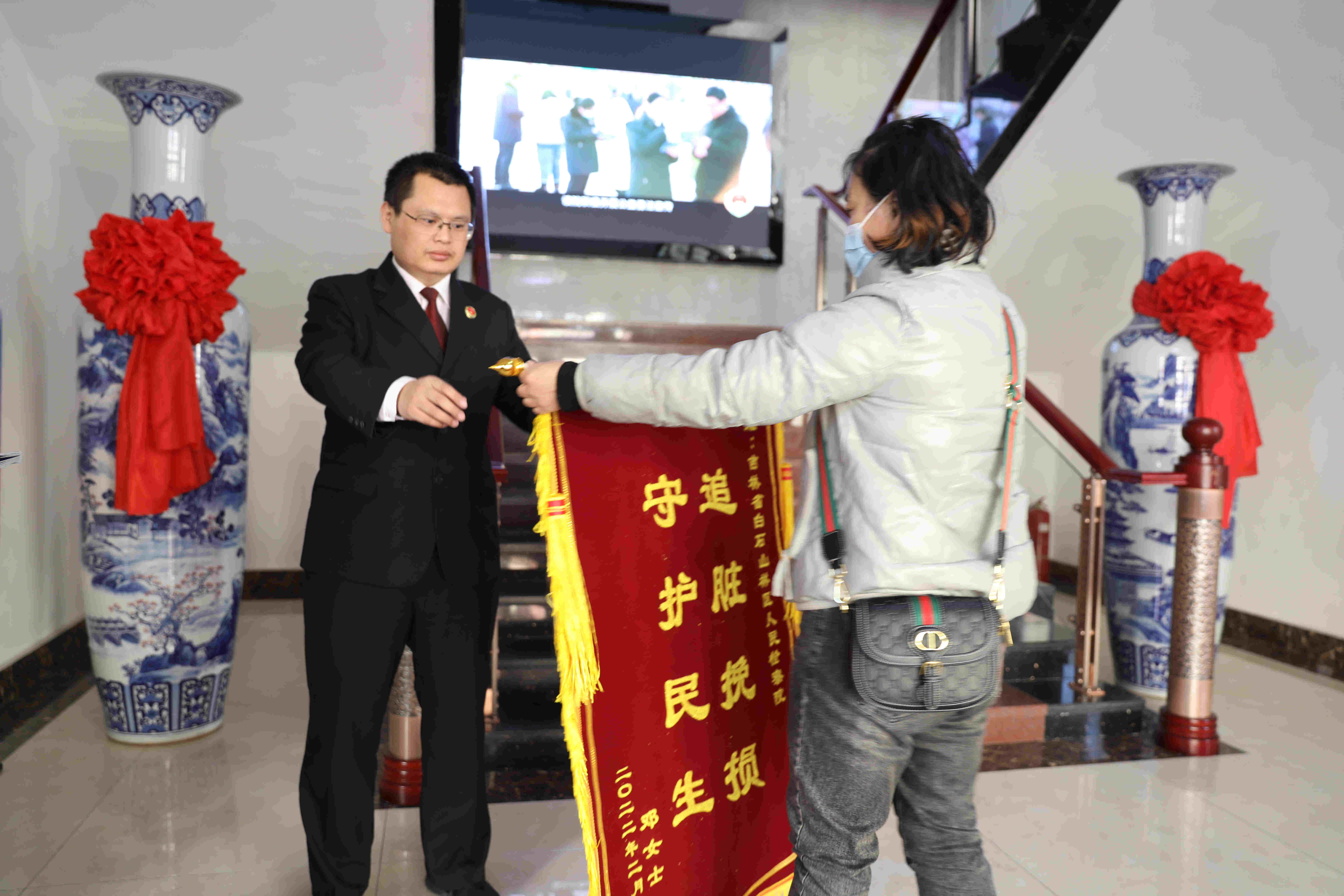 一面小小的锦旗,是对365购物平台_神器365软件下载_365365bet官依法办案的肯定,也体现了365购物平台_神器365软件下载_365365bet机关用心用情结合本职工作把实事办到了群众心坎上。白石山林区人民365购物平台_神器365软件下载_365365bet院在办理涉“两卡”犯罪活动过程中,在坚持对犯罪分子的严厉打击的同时,高度重视对被害人的追赃挽损,最大限度保障被害人的合法权益。同时,依法对涉案犯罪嫌疑人适用认罪认罚从宽制度,有效地减少了社会对抗,做到案结事了,案件办理均取得了良好的政治效果、法律效果和社会效果,也不断增强了辖区群众的获得感、幸福感、安全感。