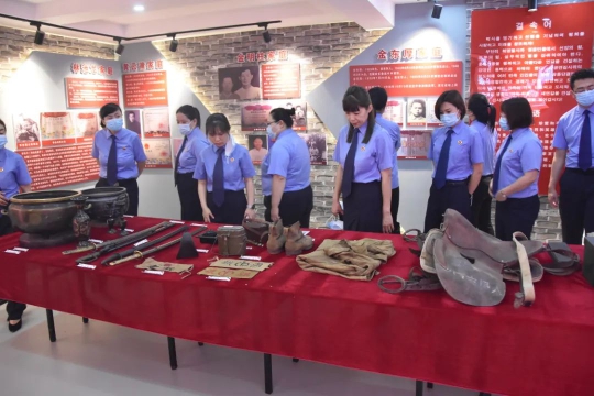 在“老兵之家”党支部书记、理事长徐淑子老人的引领下,全体党员干警有序参观了参战老兵事迹展。大家边听边看,现场的一件件实物,老兵们的一个个感人故事,仿佛一下子将参加活动的党员干警们带回了那个火红的岁月,重温了那段光荣的历史。