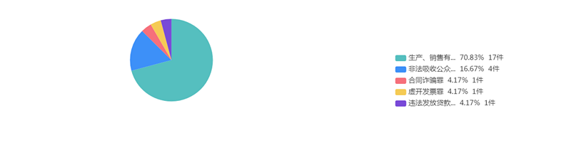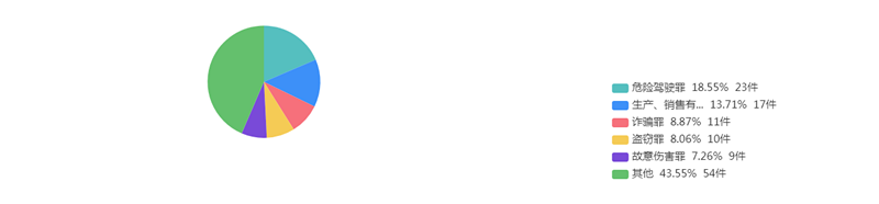 起诉案件排在前2位的罪名是:危险驾驶罪23件,占18.55%;生产、销售有毒有害产品罪17件,占13.71%。