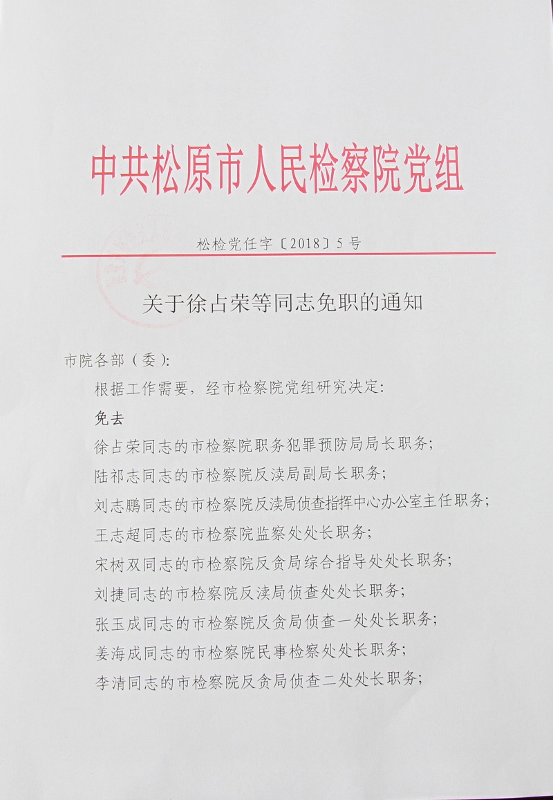 关于徐占荣等同志免职的通知